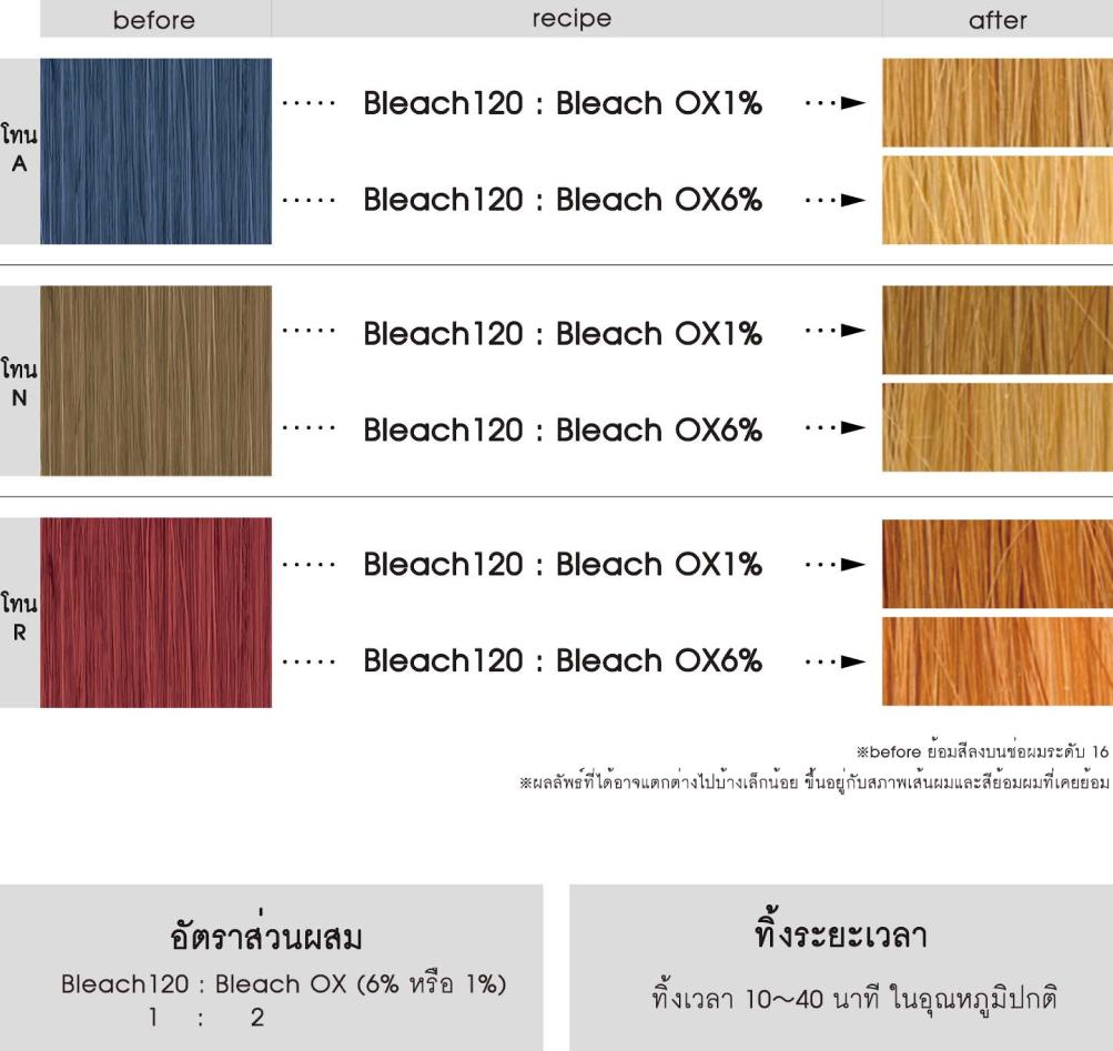 ให้ทิ้งเวลาไว้ในอุณหภูมิปกติเท่านั้น การใช้ความร้อนในขณะฟอกผมจะทำให้เกิดความเสียหายที่มากเกินไป เช่น ผมขาด และอาจนำไปสู่ปัญหาทางหนังศีรษะ ※ไม่ให้ใช้ความร้อน